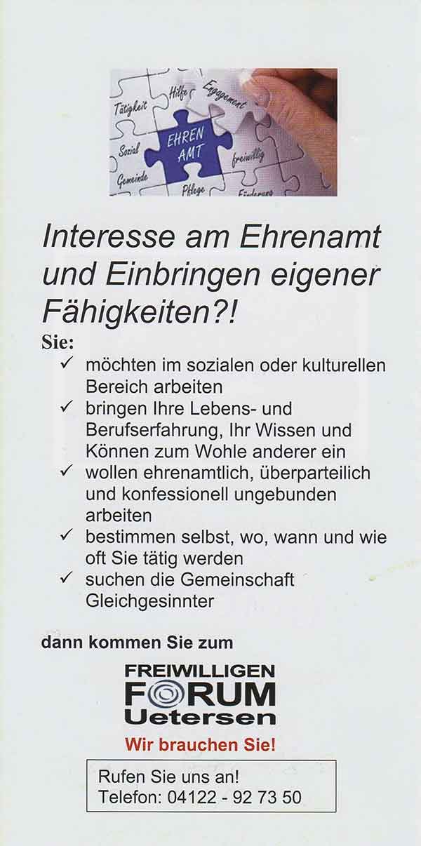 Das Freiwilligen Forum Uetersen ist ein überkonfessionelles Projekt des